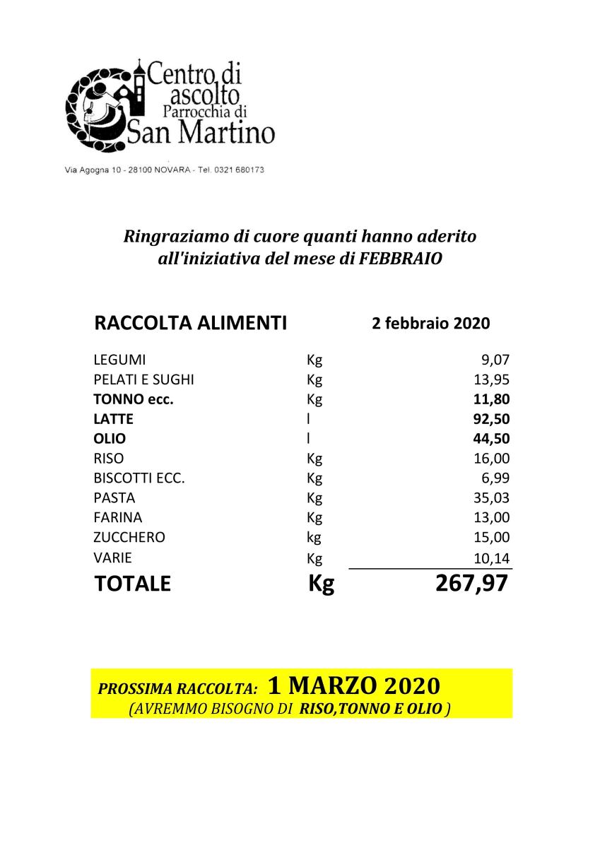200202 raccolta generi alimentari centro ascolto caritas febbraio 2020