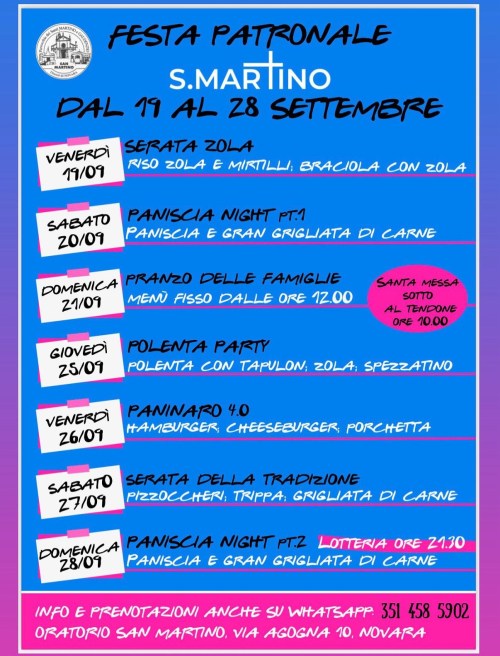 - ore 11.30 Chiesa Parrocchiale – S. Messa con gli anniversari particolari di 1°, 5°, 25°, 40°, 50°, 60° e oltre (segnala il tuo anniversario, saranno riservati i posti in Chiesa inviando una mail a parrocchiasanmartinonovara@gmail.com o telefonando in Ufficio parrocchiale 0321.612240 o al cell. 339.4873413-anche whatsapp)