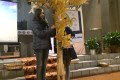 27 marzo 2015: Francesca e Alessia reggono il crocifisso fiorito di girasoli durante la tradizionale preghiera del venerdì di Quaresima per i bambini del catechismo e le loro famiglie